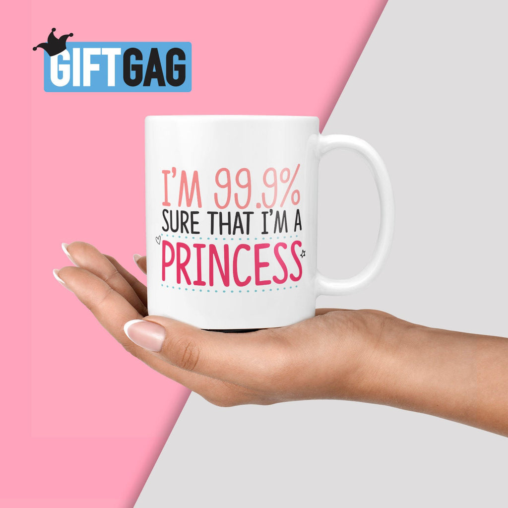 I'm 99.9% Sure That I'm a Princess Gift Mug - Gifts for Her, Friends, Funny Christmas, Office Mug, Secret Santa Humour, Princess Mugs, Pink TeHe Gifts UK